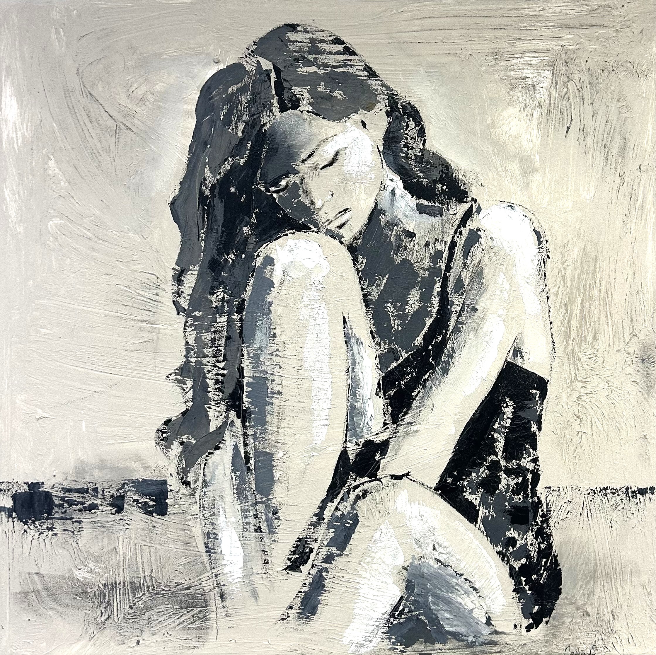 Shadow Collection består av unika originalverk där struktur och kontrast är grunden. Varje målning byggs upp lager på lager med spackel, cement och andra texturmaterial och färgpaletten är avskalad och hålls inom svart, grå, offwhite och jordnära bakgrundston. I mötet mellan ljus och mörker framträder mänskliga och abstrakta former – ibland det synliga och andra gånger det som bara anas.
