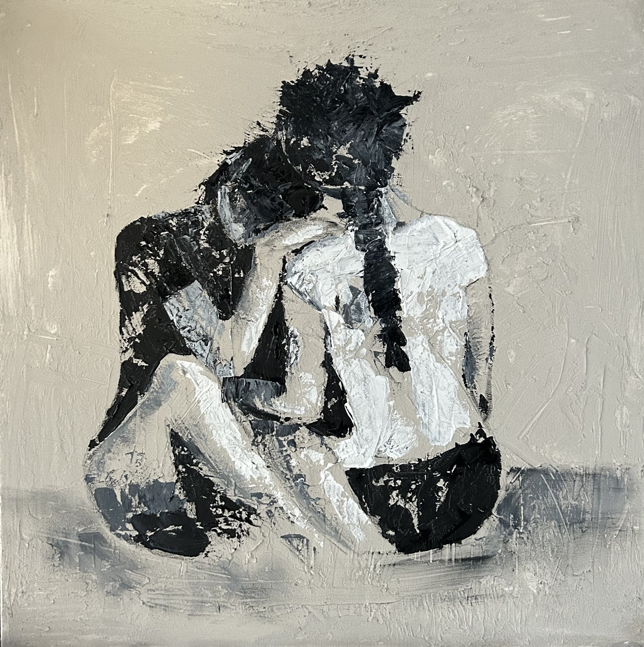 Linear är originalkonst i en abstrakt och minimalistisk serie där jag utforskar och gör min tolkning av gemenskap och samhörighet på olika sätt. De organiska siluetterna berättar ett ögonblick av relationer i kontrastfyllda toner. Motiv har gjorts på både canvas och handgjort papper.